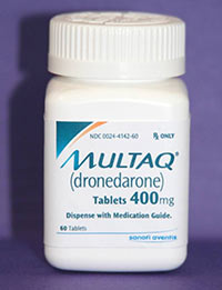 Primero sacas un producto. Se llama Multaq, es un antiarritmico que es nuevo en la oficina y es divino. Lo ha fabricado y comercializado Sanofi-Aventis.