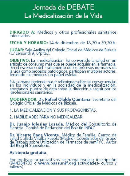 Martes día 14. Seguro que no tienes nada mejor que hacer que disfrutar de un interesante debate sobre un tema de actualidad: La Medicalización de la Vida.