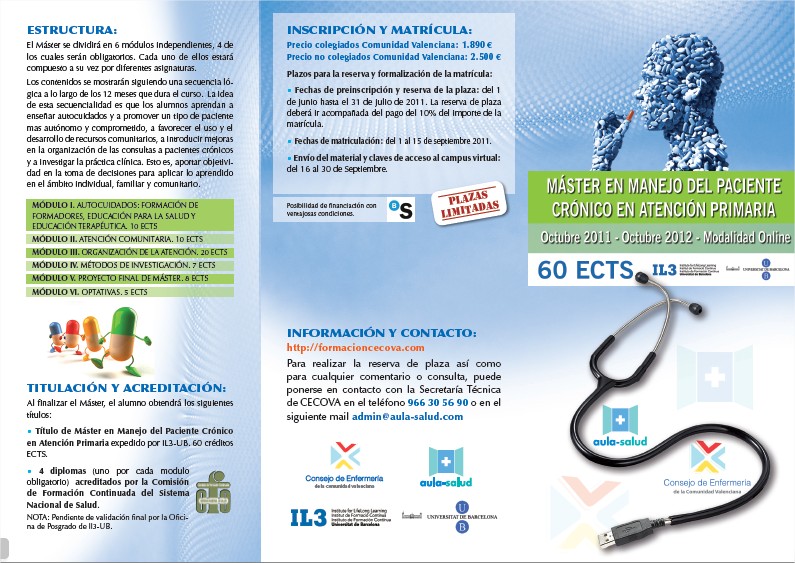 En alguna ocasión he comentado en tono irónico que pronto se crearía la especialidad del cronicólogo. No he tenido que esperar mucho para comprobar como la gente que tiene olfato ya ha detectado un nicho de formación en el tema y ya se han lanzado con un Master en el manejo del Paciente Crónico en Atención Primaria.
