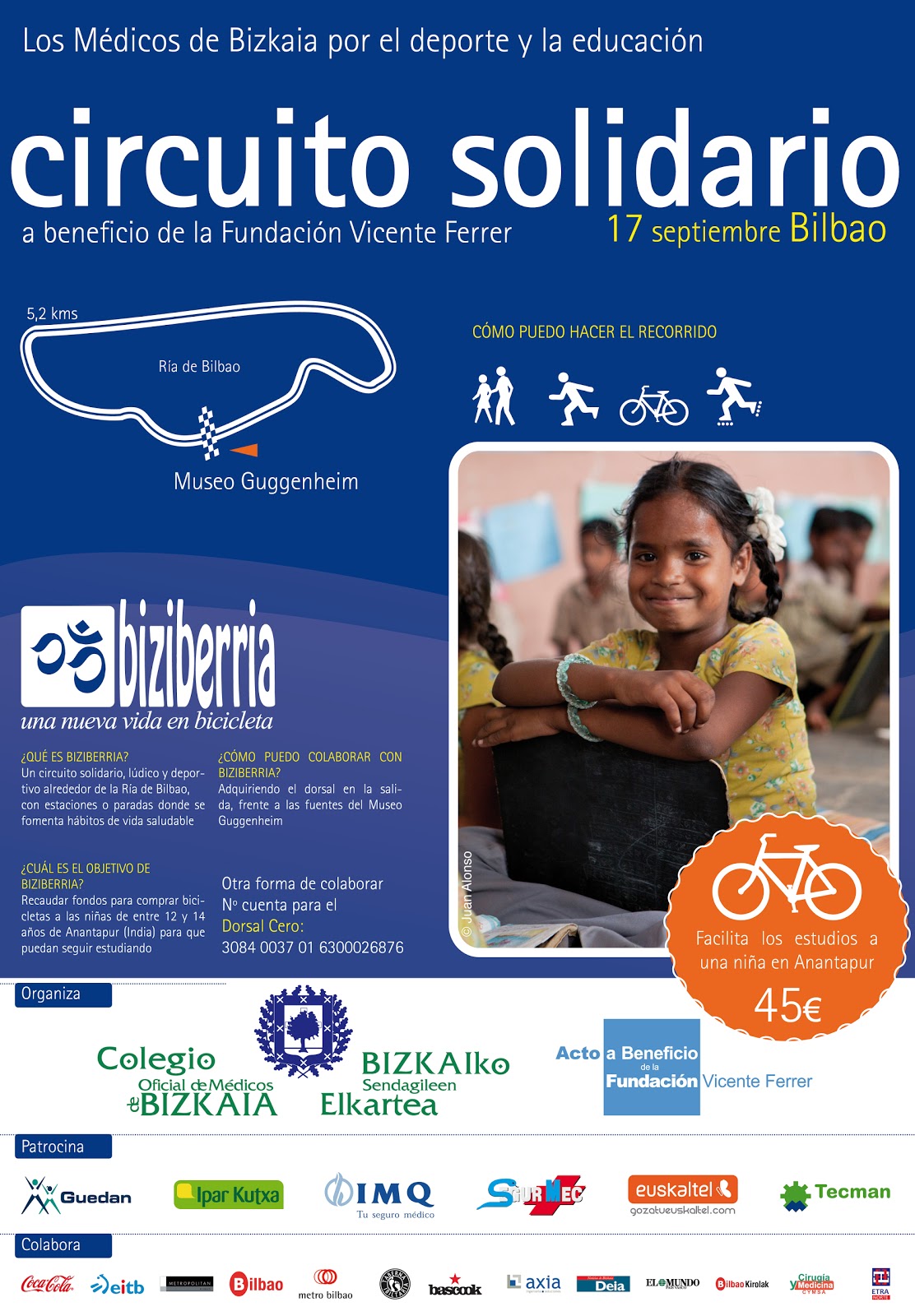 Apúntate la fecha: El próximo día 17 de septiembre, sábado por la mañana, puedes participar en una idea solidaria y preciosa. Resulta que en la zona de la India donde trabaja la Fundación Vicente Ferrer necesitan bicicletas. Y no es porque quieran formar un equipo cilcista ni para fomentar el deporte. No, lo necesitan para poder acudir al cole y poder facilitar el desplazamiento que de otra forma es penoso y largo. Además está enfocado exclusivamente para el desarrolo y estudios de las niñas y facilitar su futuro.