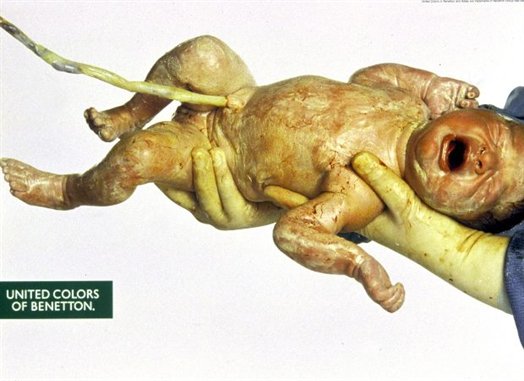 Pero esto no es nada nuevo y no se limita a los videos ni a la salud. Acordaros de las famosas campañas de Toscani para Benetton que intentaban basar su mensaje en la provocación y que servirían para plantearse las mismas preguntas sobre los límites y los medios para alcanzar objetivos. Una muestra sobre temas que nos son cercanos: Vida, muerte, Sida, anorexia