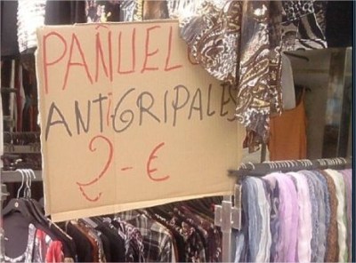 Que si la vacuna sí, que si la vacuna no. ¡Antiguos, que sois unos antiguos!. Lo que se lleva ahora son estos preciosos pañuelos antigripales por dos euros de bellón. No solo tienen su acción terapeútica (contrastada por múltiples estudios científicos publicados en Scarf News) sino que además engalanan y embellecen al que lo usa de forma singular. !Ah! Lo del precio es negociable y si compras un lote de tres no pasa de los cinco euros