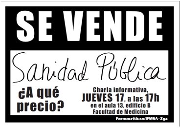 Decir a estas alturas que el futuro que nos viene es de color negro azabache es una obviedad ya que lo sabemos todos. Una de los principales líneas de actuación que el PP va a desarrollar y no es que me lo invente sino que ya lo ha anunciado la Señora Cospedal en Castilla La Mancha, lo hace la Señora Aguirre en Madrid y en parte se ha hecho en la Comunidad Valenciana, es la privatización de la sanidad pública bien en su gestión o en su totalidad.