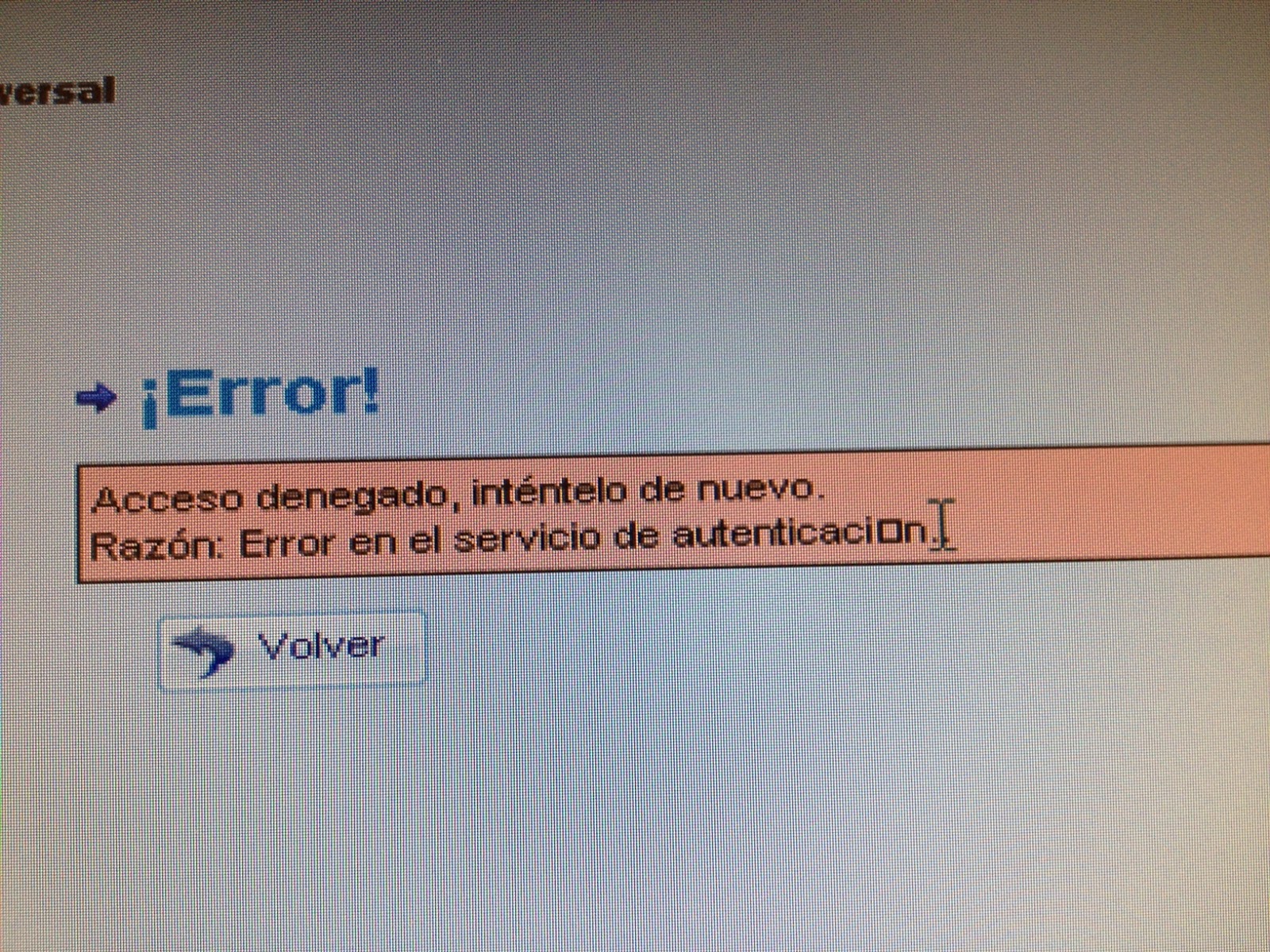 - Si te da error de autentificación, cierra la pantalla (por la X de arriba a la derecha) y vuelve a intentarlo. Suele funcionar si se insiste un par de veces.