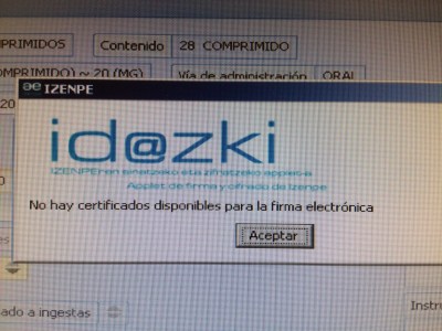 - Si no reconoce la firma, saca la TEP y vuelve introducirla. Te volverá a pedir el PIN pero suele resultar suficiente. (y no te saca de la historia) (Ay, Izenpe, vaya lío nos has montado con esta historia)