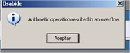 No me digais que no es conmovedor. Ahora somos plurilingües y el programa también nos habla en inglés. La verdad es que no es más que una version «de la pérfida albión» del ya conocido error «la operación aritmética ha provocado un desbordamiento». Pero en esta ocasión y gracias a la pertinaz constumbre de preguntar y repreguntar sabemos a qué se debe esta políglota respuesta.