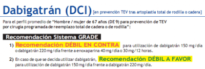 Mientras tanto mantendremos el honor de ser la avanzadilla en el uso del dabigatran en nuestra comunidad. Mientras, yo sugeriría que podrían sacar una nota hablando de la prescripción inducida y pedir disculpas a los Médicos de Familia por el «sanbenito» que nos acaban de endosar. Espero que nadie use este informe en ninguna presentación pública porque entonces me mosqueo de verdad.