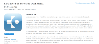 Osakidetza acaba de lanzar su aplicación «Lanzadera de servicios Osakidetza». Yo ya me la he bajado y la he probado y está francamente bien. Funciona de puturrú para pedir una cita con el médico, la enfermera o la matrona. Lo he probado y funciona correctamente.