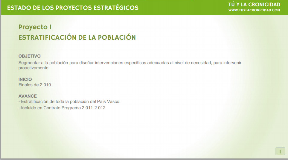 La estratificación de la población es un requisito previo para poder desarrollar los otros 13 proyectos en base a los distintos perfiles y necesidades que se derivan de esta acción.