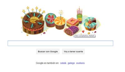 Entre las buenas está que te felicita mucha gente. Algunos conocidos de carne y hueso (la mayoría con más carne que hueso, que a estas edades hay mas chicha que otra cosa) y otros que son virtuales. Entre estos últimos me ha felicitado Google y me ha dedicado un doodle personalizado. Me ha hecho mucha «ilu».