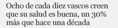 De la última Encuesta de Salud de la Comunidad Autónoma del País Vasco 2013 me voy a quedar con dos de sus datos.