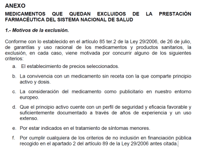 Que un principio activo tenga un perfil de seguridad y eficacia favorable y suficientemente documentado a través de años de experiencia y un uso extenso, sea uno de los motivos para la exclusión es de un absurdo que te cagas. Mañana quitamos la penicilina y sus derivados que encajan como un guante en este punto