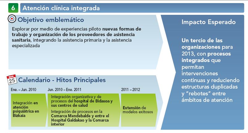 4) .- Apuesta por continuar con el enfoque orientado a la eficiencia a la hora de abordar la Cronicidad, la vejez y la dependencia. Otra cosa hubiera sido un suicidio, un despilfarro y una incoherencia con el resto del mundo sanitario. Hay cosas estupendas, rentables y con gran potencialidad futura. Es hora de apostar por lo que ha demostrado que funciona y es rentable, por corregir algunas derivas y por desplegar proyectos que están a medias, pero al mismo tiempo es hora de agrupar y reconducir ese sarampión de tantos institutos, tanta empresa y empresita, que habiendo lo mismo y teniendo objetivos paralelos y similares han proliferado en demasía.